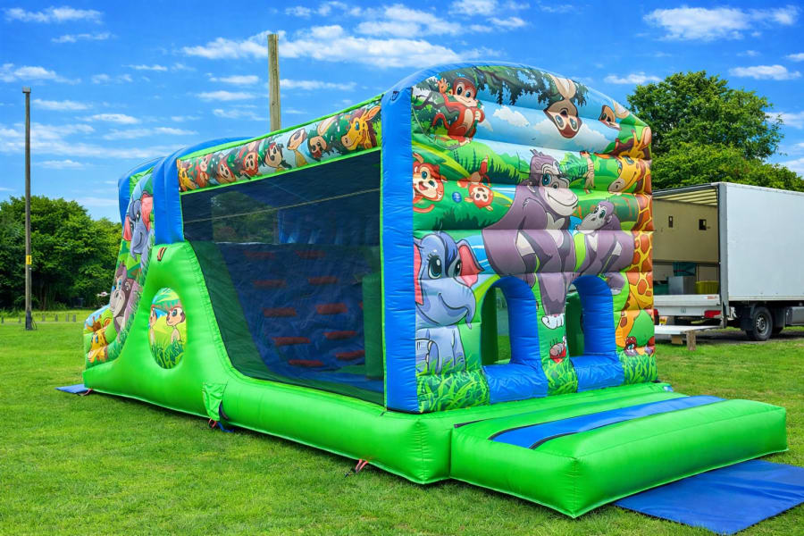 Our 28ft Fun Run is a fantastic choice for almost any occasion and is suitable for children and adults alike. Packed with fun features, it includes a spacious bouncing area, bish bash obstacles, and an exciting up-and-over slippery slide to keep everyone entertained from start to finish.