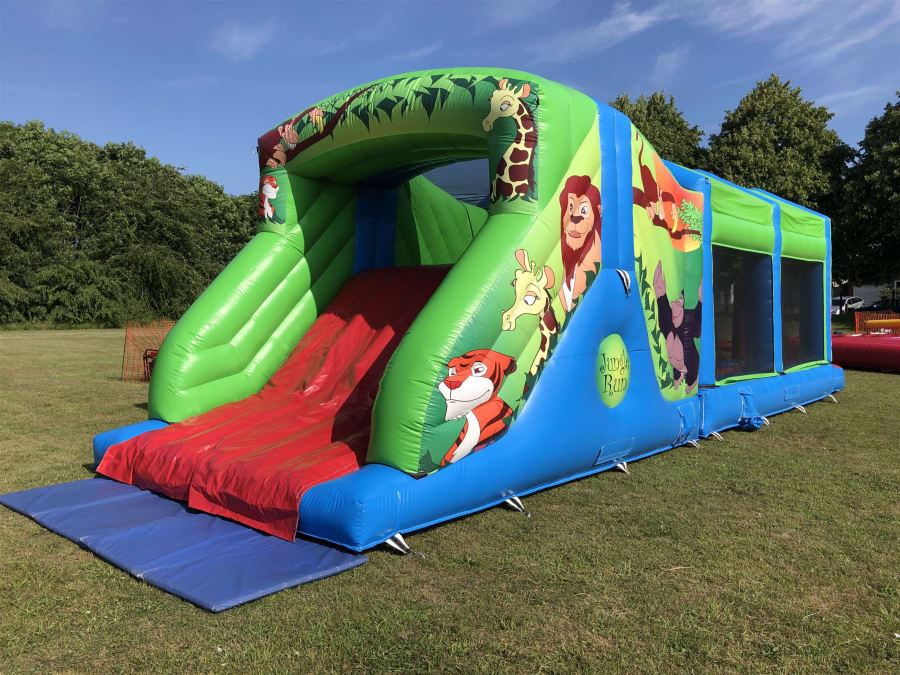 Run, jump, climb and slide your way around our huge 40ft jungle-themed assault course! This action-packed inflatable features an internal bouncing area, a bish-bash tunnel, and climbing steps that lead up to a thrilling slide — followed by a big “Wheee!” back to the bottom to start all over again. Suitable for both children and adults, it’s guaranteed to keep everyone entertained.