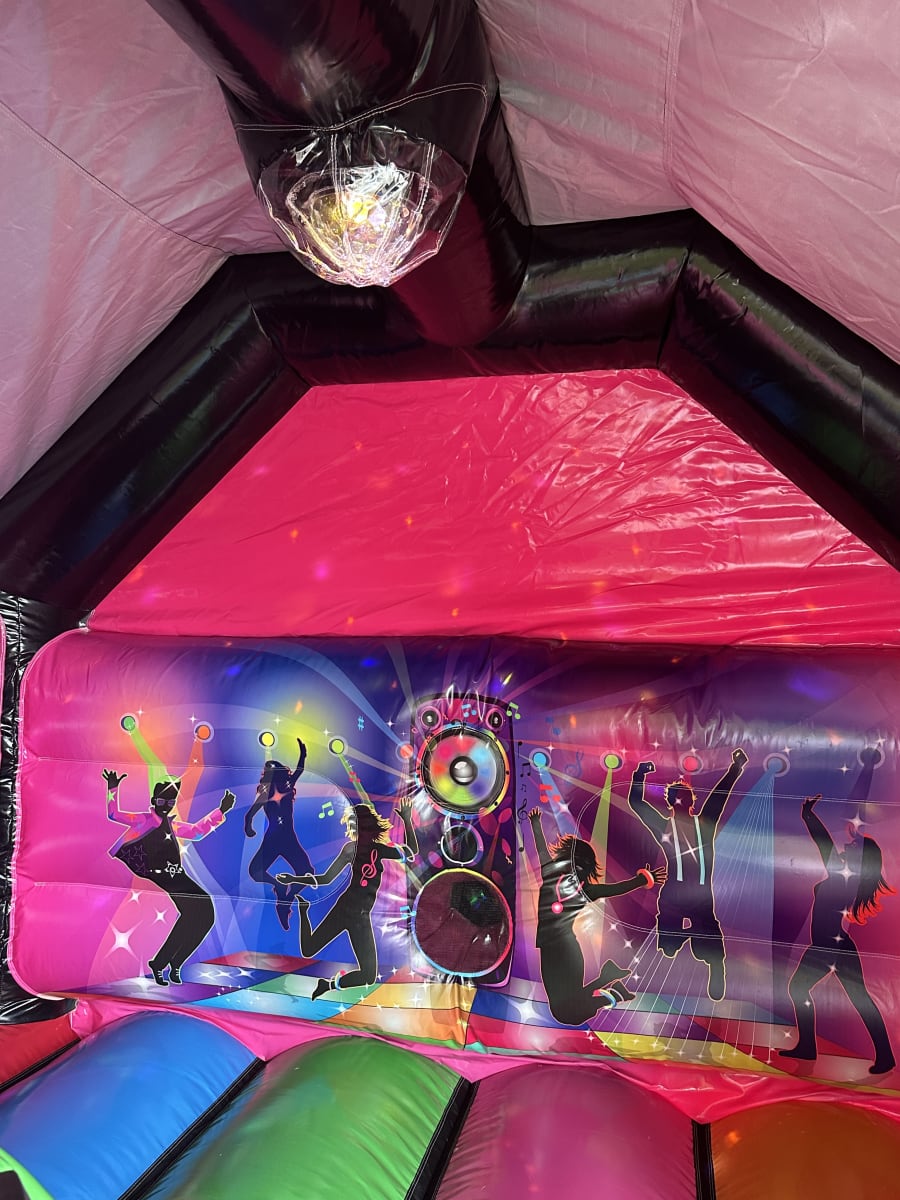 Take your celebration to the next level by adding a disco light and speaker inside the Disco Bouncy Castle for just £15! Bring the dance floor to your garden, or venue and create a true party atmosphere. Simply select this optional extra at the details page when booking online. (disco light might not be affective in bright light)