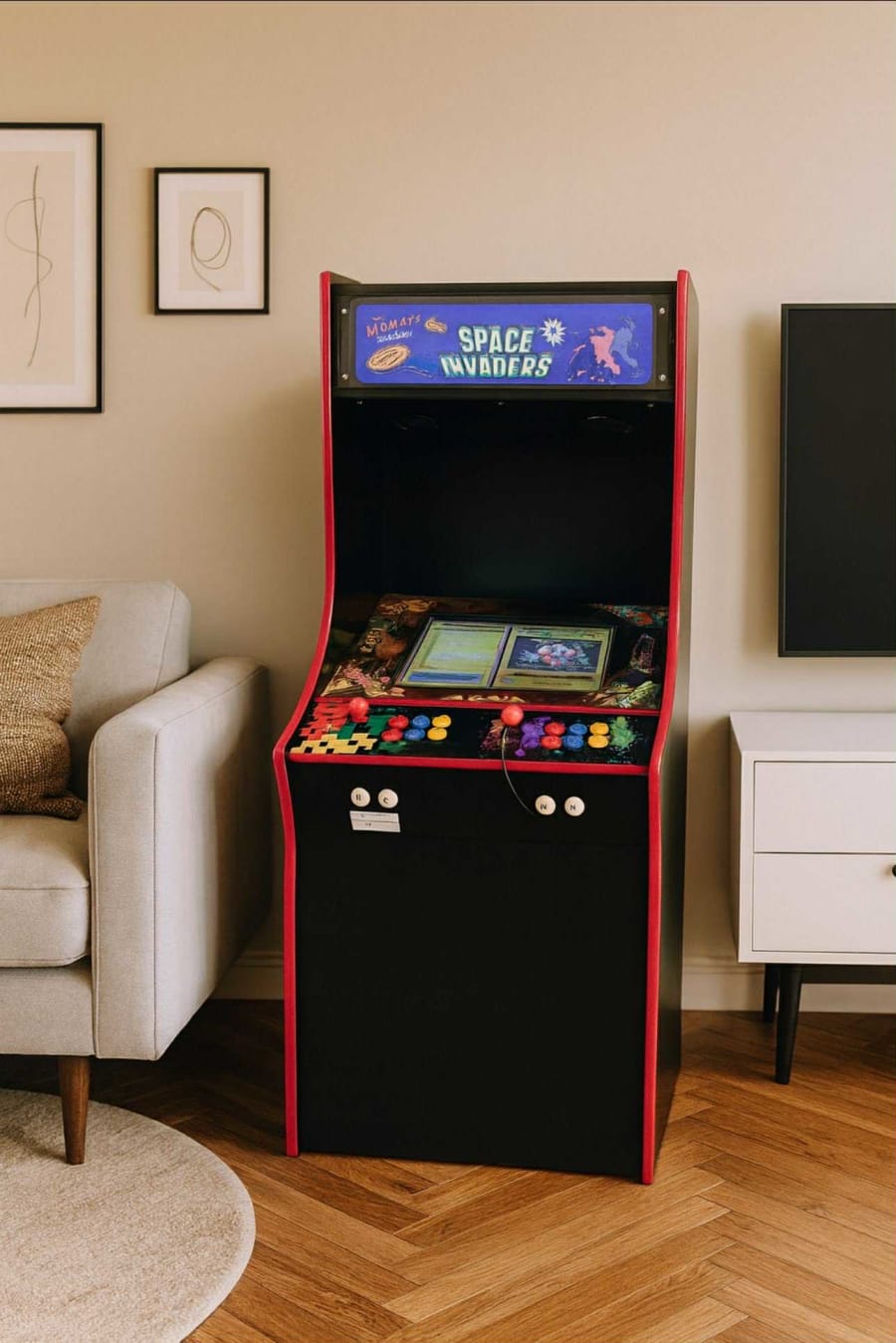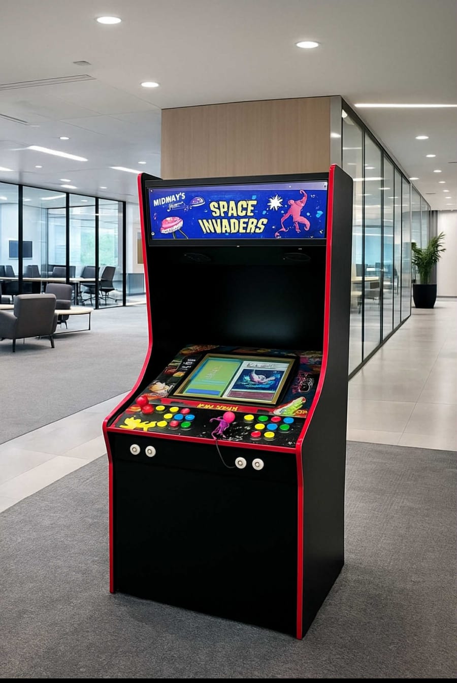 Over 200 retro arcade titles such as Pac-Man, Galaga, Frogger and Space Invaders, right up to 1990s games like Street Fighter II, Mortal Kombat and After Burner and hundreds more. This two-player arcade machine is a free play arcade machine and you can switch from two player's to one player at the touch of a button. Ideal extra for any corporate event, dinner party or as a crowd puller at an exhibition.