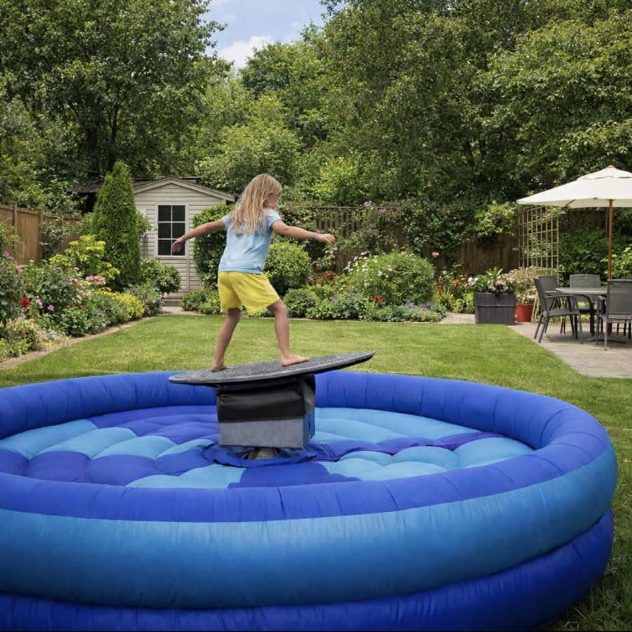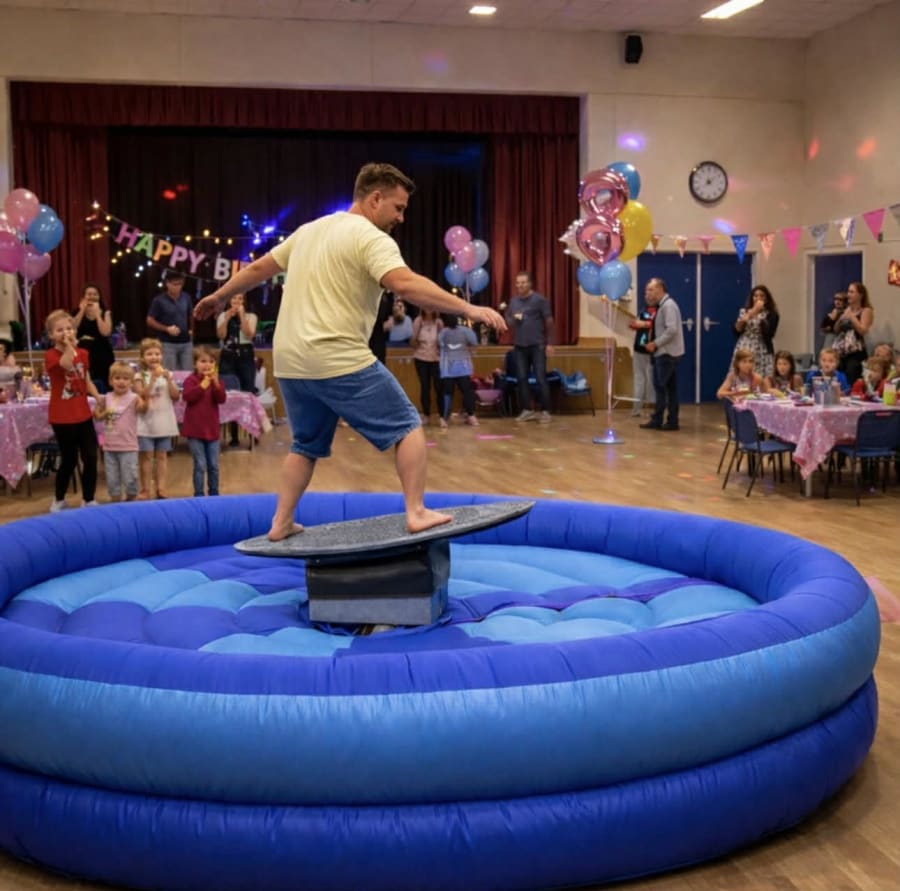 Put your balance to the test and see who can ride the wave the longest! Whether you're planning a birthday party, stag or hen do, or a corporate event, this exciting inflatable surfboard machine will make a big splash. Available across the South of the UK, including Swindon, Cheltenham, Oxford, Reading, Bristol, London, Bath, Southampton, Newbury, and beyond.