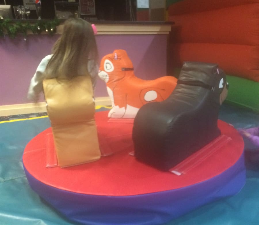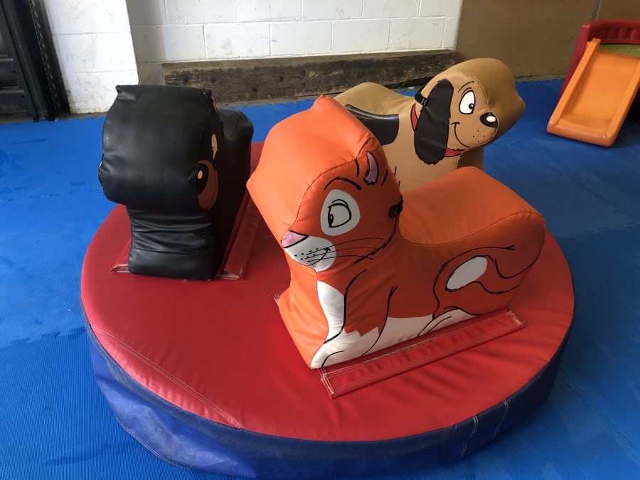 Our three seater roundabout would be an ideal popular add on, for any one of our soft play sets, or bouncy castle hires for indoor use only. Comes supplied on a thick soft mat. For five years and under.